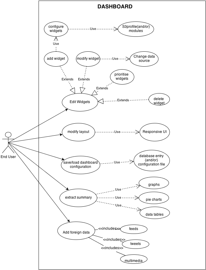 S3profile currently provides ability to configure widgets (using code) that can be used as components for dashboard. Dashboard project aims to brings this configuration and customization to user domain with responsive UI/UX and at same time being as modular as possible.