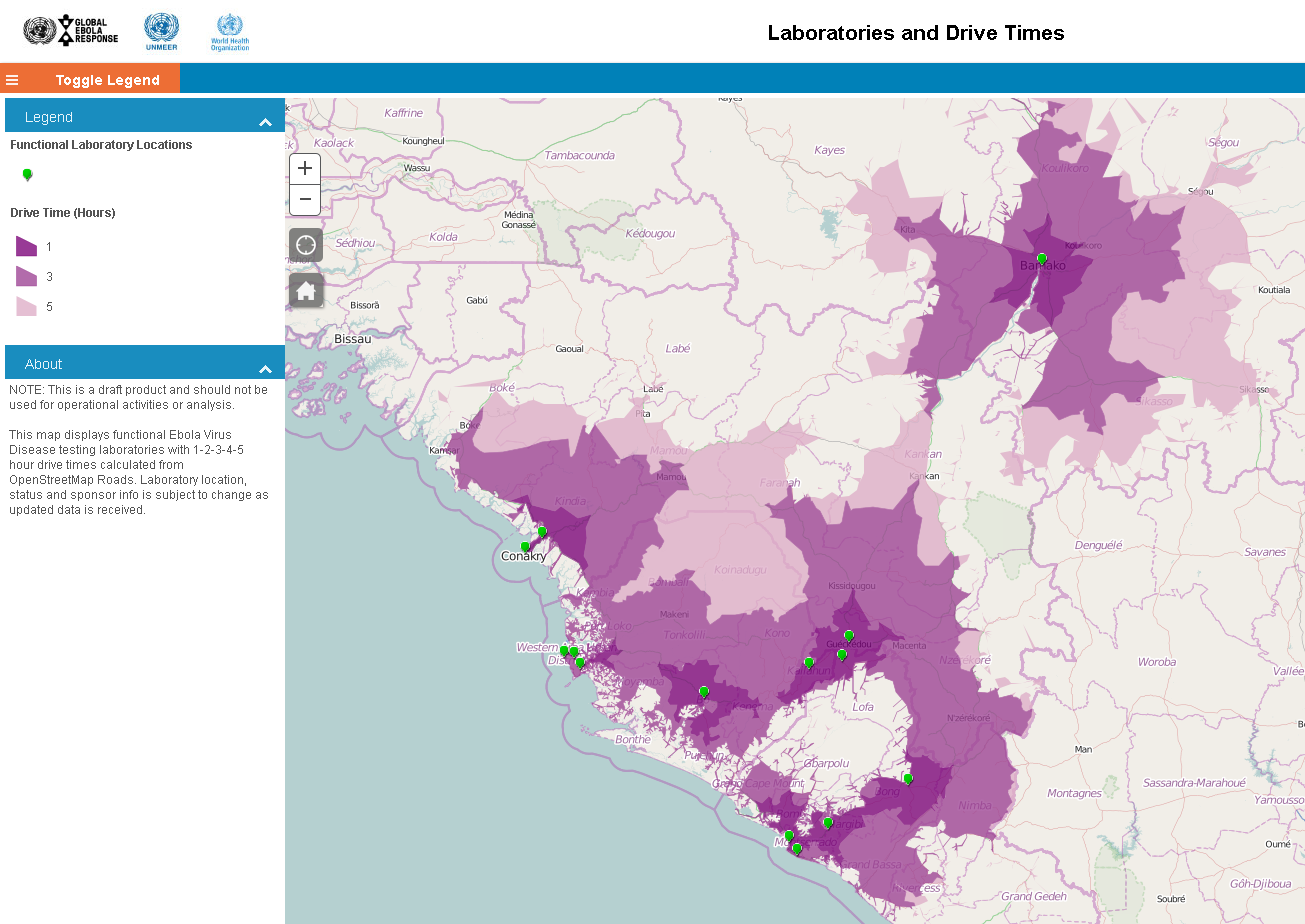 See Example for Driving times to Ebola Treatments Centers in West Africa:
