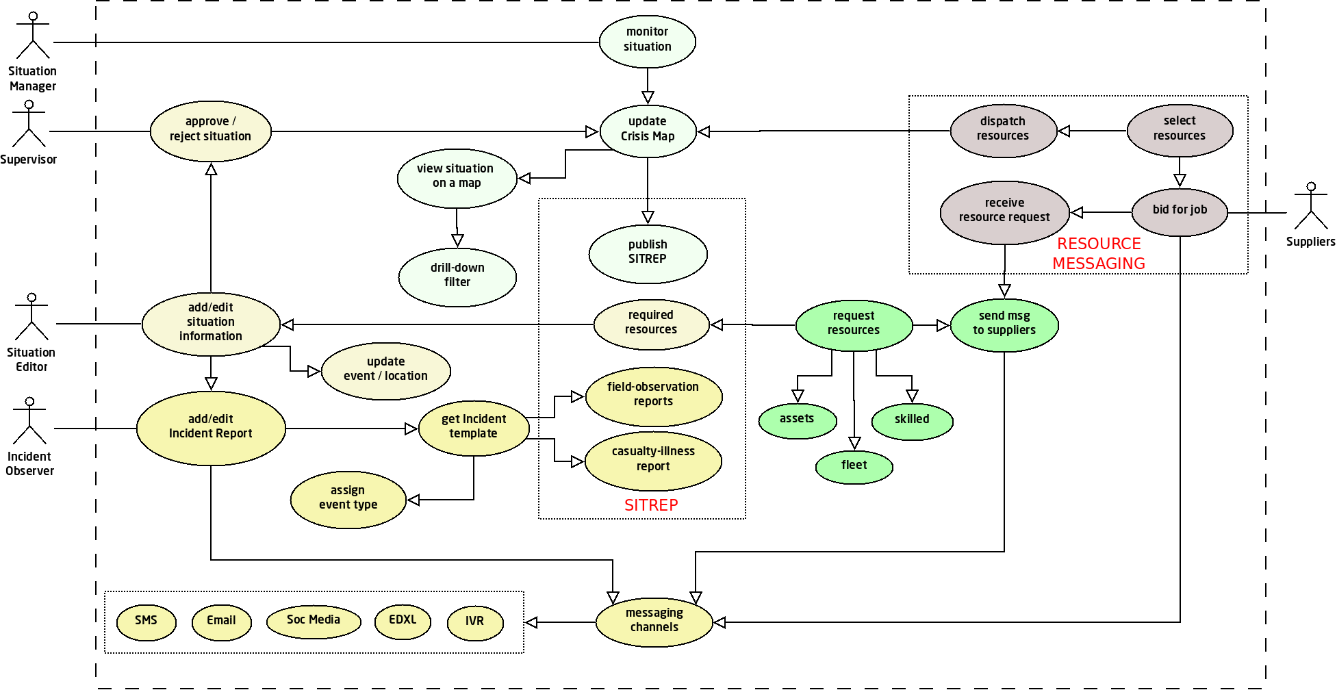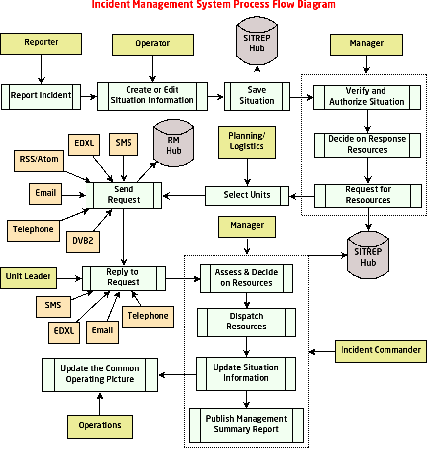 - manage event type specific work flows pre-populated message templates and messages (field-observation, casualty-illness, situation-information, response-resource, resource-messaging and management-summary reports)