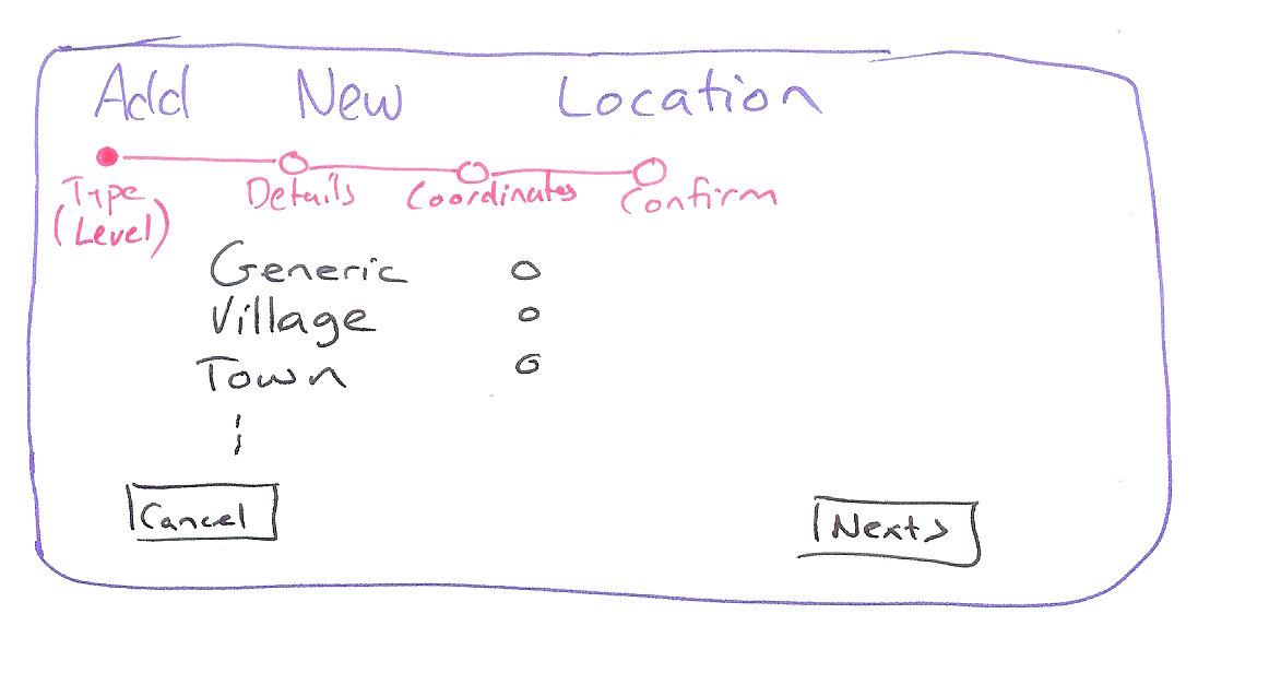 FB: Normal end-users can normally only add 'Generic' locations in which case this 1st screen should be skipped...