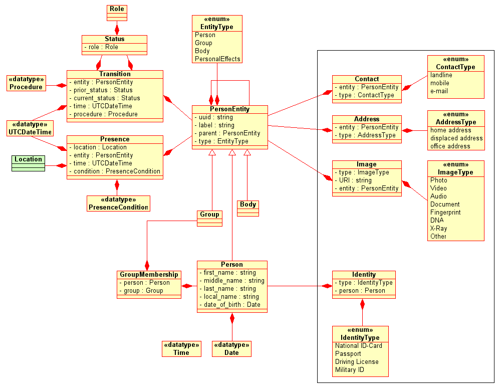 Note, that a "missing person" is not a person entity in the VITA context, but an entity (=person) plus a finding (=is missing). Implementations must handle this explicitly and consistently - e.g., a "missing person" as entity can never have the status "found", because this is a contradiction.
