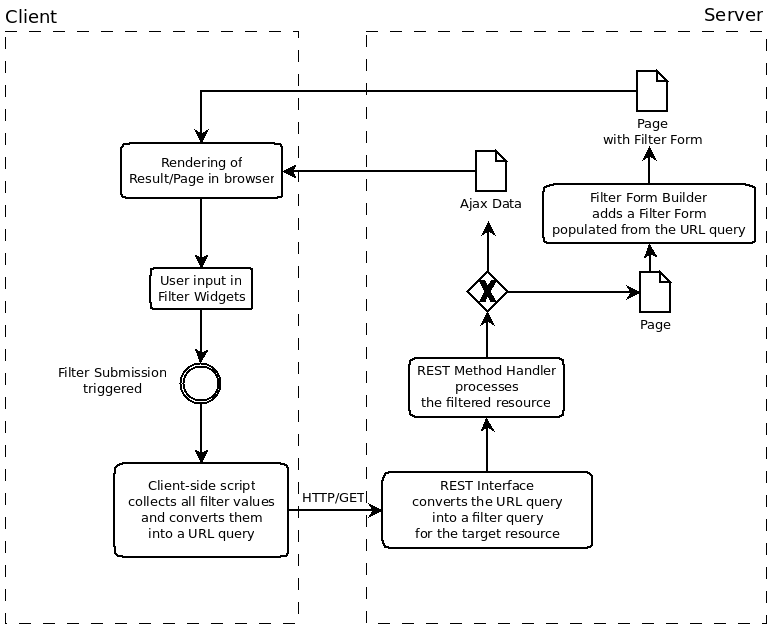 - a filter form builder to render the filter widgets and populate them with the values from the URL query