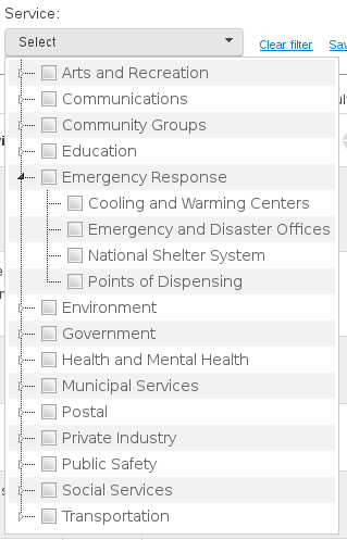 S3HierarchyFilter presents filter options as hierarchical widget:
