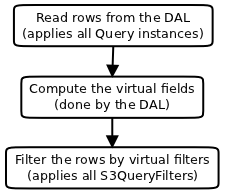 It is possible to define S3ResourceQueries even for real fields. When extracting rows from the database table, those parts of a S3ResourceQuery which (only) concern real fields get automatically converted into Query instances and added to the DAL query. Furthermore, where S3ResourceQueries need joins, those get automatically added to the real query as well.