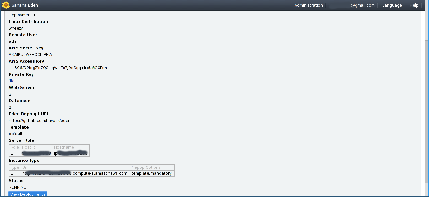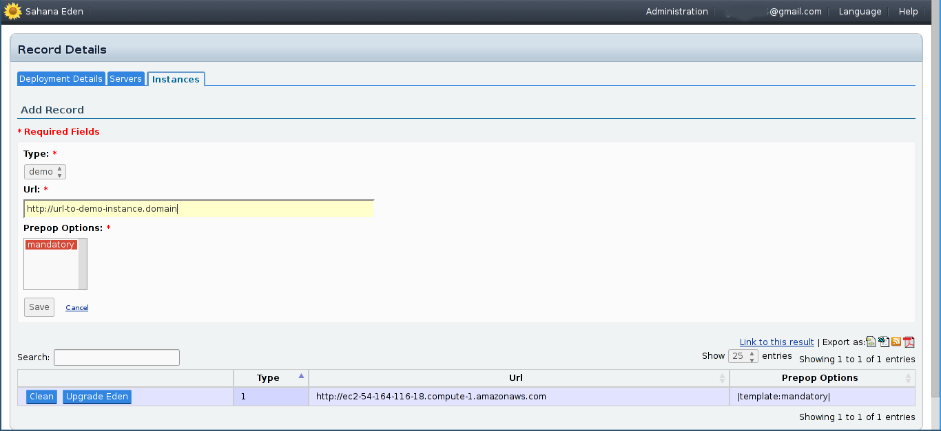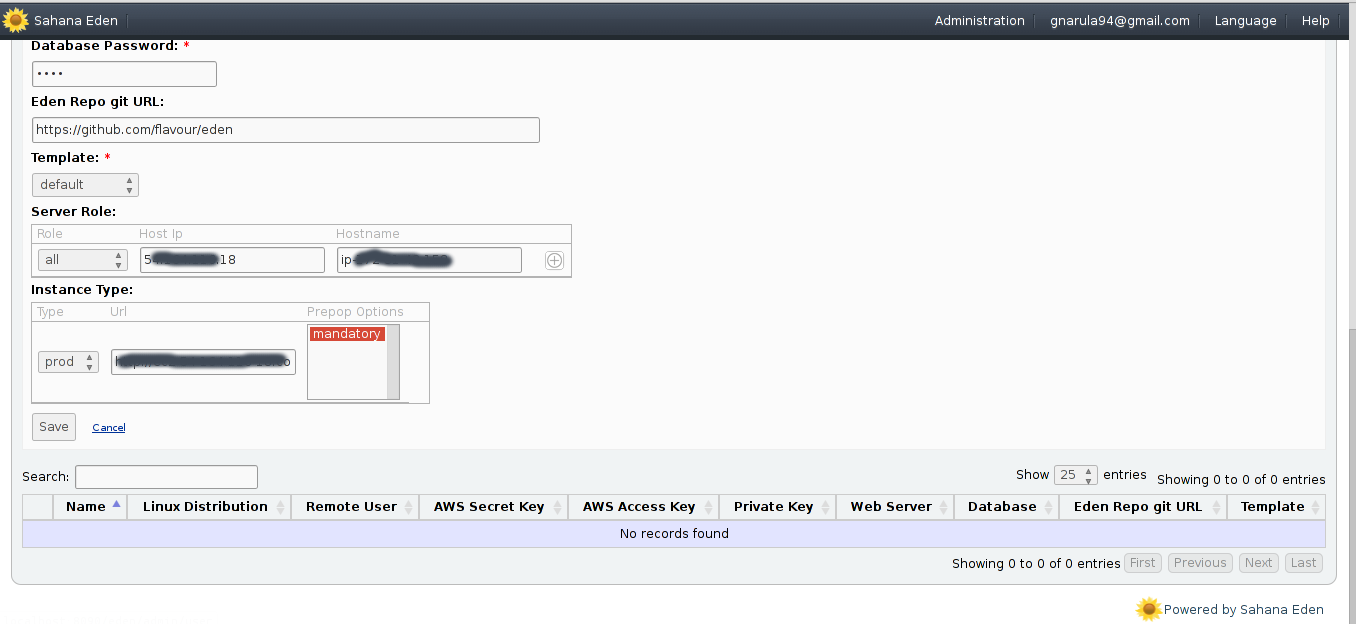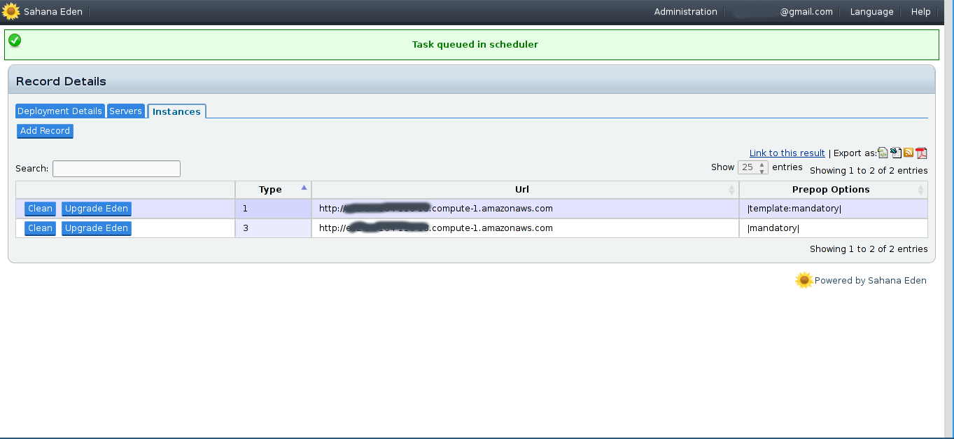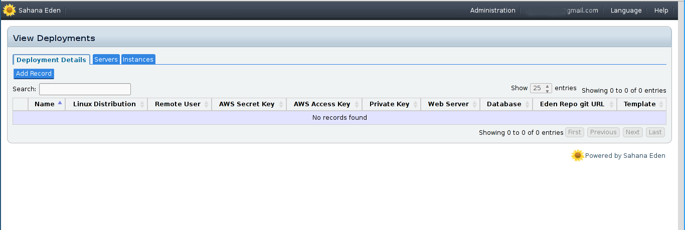 - Once that's done, click on "Deploy Eden" and "Add Record" to deploy a new Eden instance