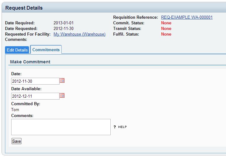 3) Input basic information. Request type is the type of thing you are requesting for. In our case, we are requesting for warehouse stock. Request number and date are just for tracking purposes. | |