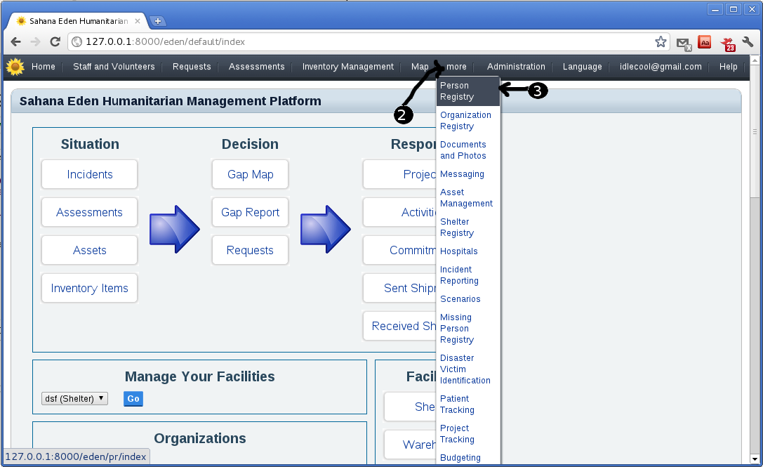 A form is associated to a resource, hence, navigate yourself to appropriate resource in Sahana Eden, In our case it is Person Registry.