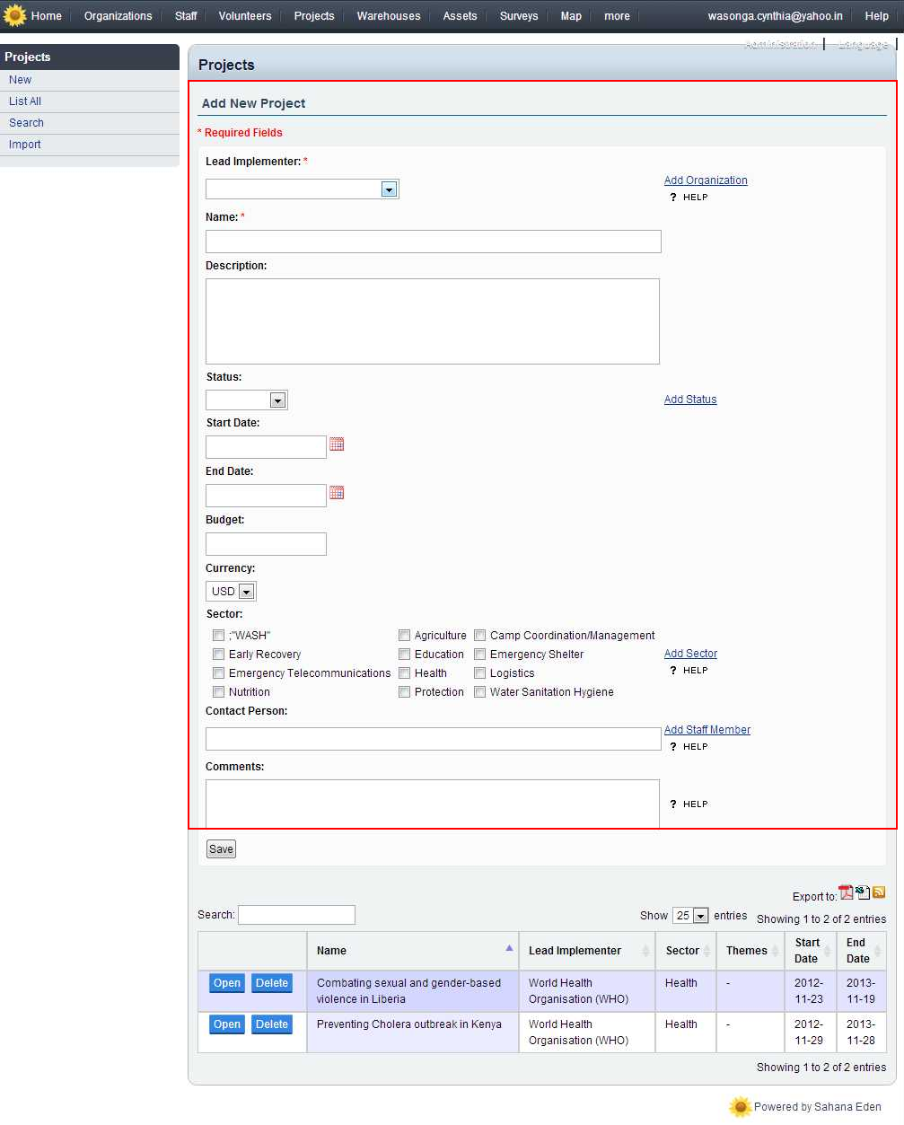 This particular Eden page is a guide on how to create a project on the Sahana Software Foundation.