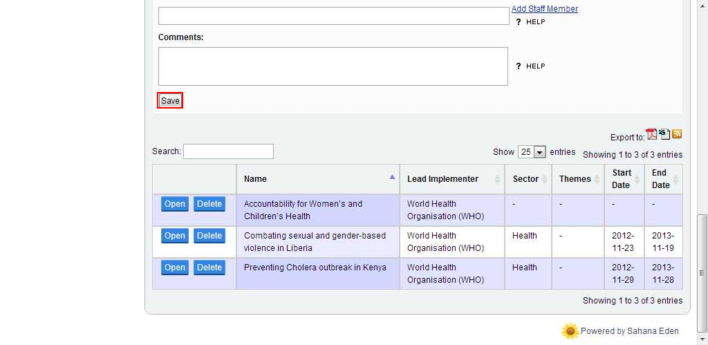 1.On the Sahana home page, click on the project button. | |