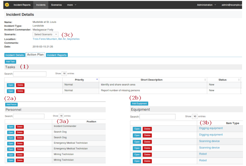 - Building the plan - once scenario is selected, the action plan should auto populate indicating the task priority and required personnel and equipment